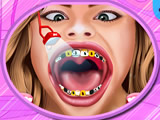 Miley Cyrus, aka Hannah Montana, is so overwhelmed by his concerts and autograph sessions that she has forgotten, for too long, to go to the dentist. Help her to fix this error and recover her bright smile by caring and cleaning her teeth. Choose the right tool according to the specific problem of each tooth.